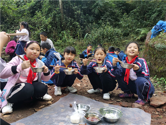 四天三夜的研学实践活动中,首批学生分别参加了“生活自理”“科普实践”“野外拓展”“团队建设”“艺术实践”等五大类三十余项实践活动。