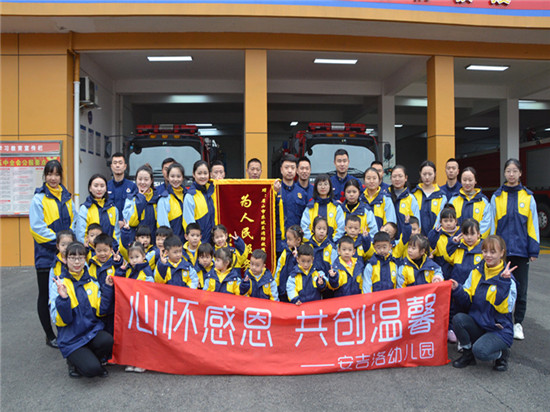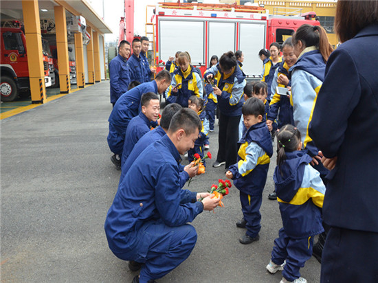 幼儿园的小天使们来到东坡区消防救援大队,在消防员的带领下,师生们参观了车辆器材装备,当孩子们看到红色的消防车上装满了各种各样的消防工具时,迫不及待地向消防员提出了许多问题,天真的话语给大家带来阵阵笑声,消防员耐心细致地回答了孩子们的问题,并介绍了消防车上各器具的名称和用途。随后,孩子们为消防员叔叔送上了精心准备的节目,活泼可爱的舞姿赢得阵阵掌声。表演完毕后孩子们亲手为消防员叔叔送上了花,还将自己亲手制作小饼干送给了叔叔们,同时送给他们一个大大的拥抱,感谢他们的无私付出,在这个寒冷的天气给叔叔们送上了一份温暖。