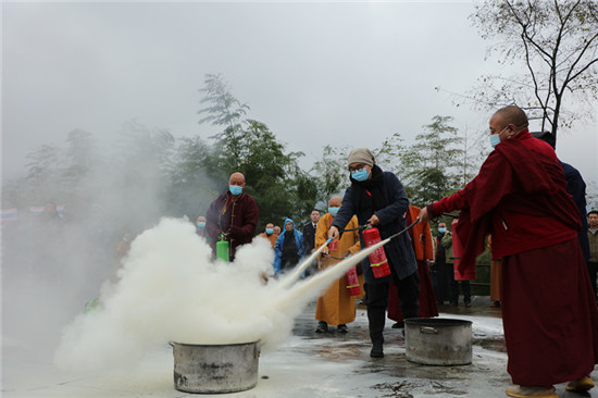 本次消防演练主要针对把理念和做法贯穿到宗教场所消防安全管理工作当中,深入开展各类隐患的排查治理和应急演练,全方位提升“四个能力”的建设。在现场活动中,市消防救援支队副支队长郑校桥对宗教场所消防安全工作部署了“三个到位”即:意识到位、责任到位、措施到位。他表示,冬季气候寒冷干燥,发生消防安全等事故的风险加大,需时刻绷紧安全生产这根弦,以高度的政治自觉、思想自觉、行动自觉,要抓好消防安全各项工作。四川省民族宗教委副主任马飞副主任对此次活动的成功表示祝贺。他强调消防工作只有起点,没有终点,步步都是“攻坚战”。举办此次消防演练活动,就是要引导各地宗教管理部门和宗教团体进一步增强消防安全意识、普及消防安全知识、提高安全防范技能,全面提升民宗领域消防安全管理工作水平。各市(区)、县管理部门、宗教团体,要提高站位,务实开展拉网式大检查,排除各种安全隐患,提升宗教界消防安全工作的主动性、预见性、针对性。要明确责任、建章立制,切实履行好消防安全工作领导责任、监督责任、主体责任等,提升履职尽责的执行力、落实力、约束力。要标本兼治,多点发力,既立足当前,更要着眼长远,持续加强部门协同,凝聚工作合力,巩固齐抓共管格局,统筹推进消防安全工作长效管理,推动消防安全治标治本工作常态化、科学化、规范化。