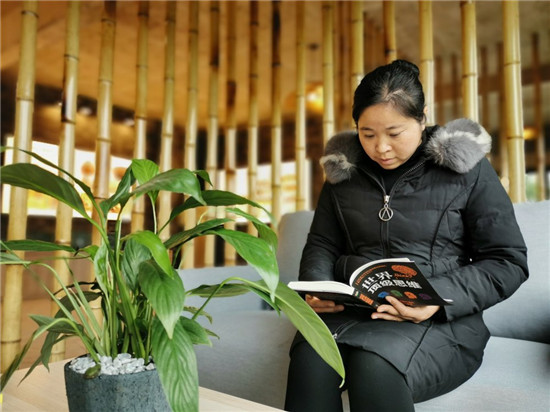 杨惠群在百家池村村史馆内阅读
