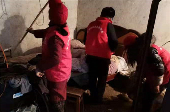 12月4日,安家坝老年服务队特意为黄老提供上门服务,志愿者们有的为老人换洗衣服、被套、清理房屋,有的还同黄老一起唱起了《我是一个兵》、《中国人民志愿军战歌》等歌曲,听着这些曾经在部队时经常哼唱的歌曲,脸上露出开心的笑容。
