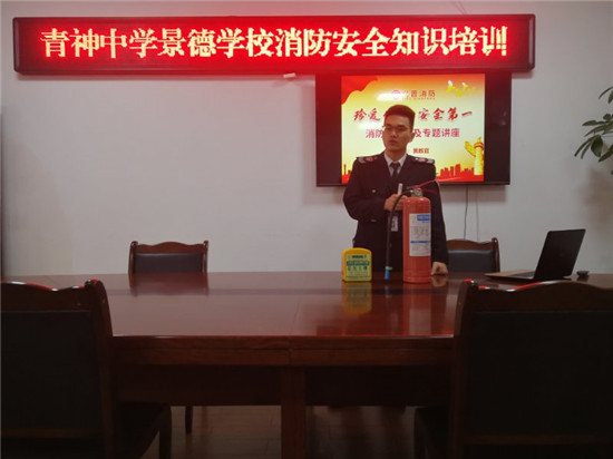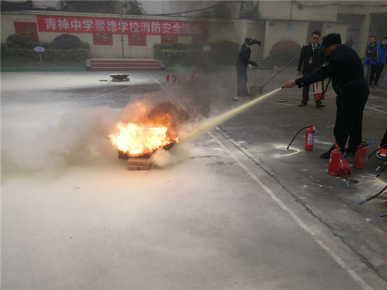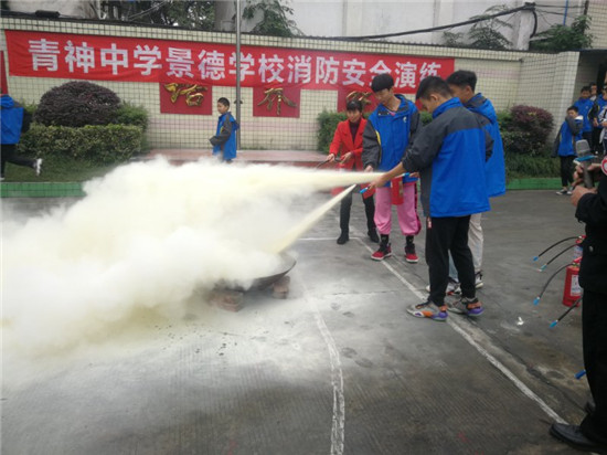 四川新闻网消息(鲁红燕 文/图)为切实加强冬春火灾防控工作,有效预防和坚决遏制重特大火灾事故发生,12月8日,青神县消防救援大队走进青神中学景德学校开展冬季消防安全培训演练。