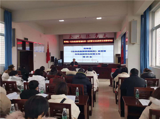 会上,通报了全县化妆品市场的突出问题,围绕 “是什么”“做什么”“怎么做”三个问题,就新《条例》的修订背景及化妆品的定义、分类、标签要求、市场准入、不良反应、经营者义务、法律责任等内容进行了讲解,对青神县如何规范化经营提出了明确要求。