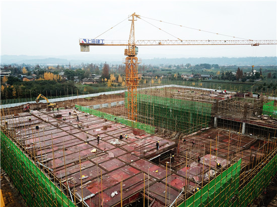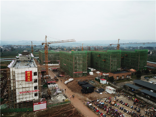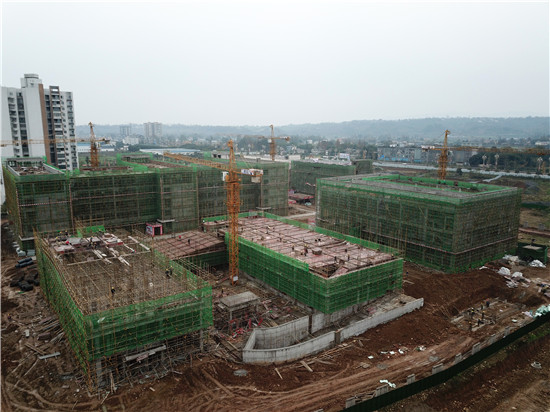 四川新闻网消息(袁桂林 记者 李田)12月21日,眉山市洪雅县民生项目“江南学校”施工现场,“封顶大吉”的巨大条幅悬挂在主建筑楼上,工人们正在建筑内忙着砖砌体施工。在旁边的综合楼施工现场,工人们正在进行钢筋捆扎和模板架设。操场上,主席台地梁部分已基本完成。