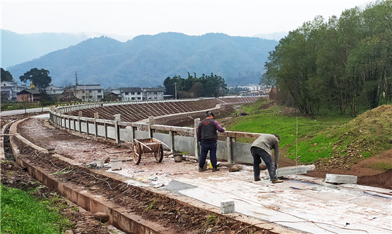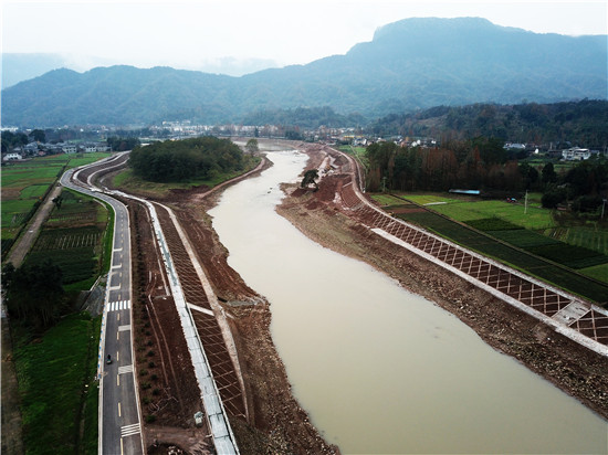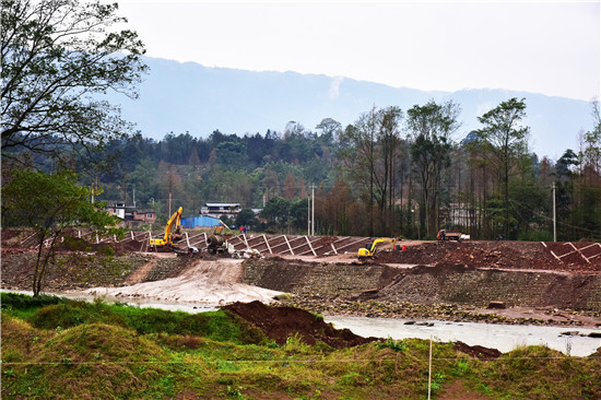 四川新闻网消息(袁桂林 记者 李田)12月21日,记者在眉山市洪雅县花溪河堤防工程施工现场看到,环岛及两岸河堤施工已基本完成,工人正在进行堤岸游步道地砖和护栏安装。
