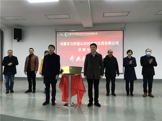 四川新闻网消息(张杰 文/图)洪雅县地域广袤,农地、林地、水域等各类农村资源丰富,为整合盘活全县各类农村资源,助力乡村振兴,2020年12月22日“成都农交所眉山农村产权交易有限公司洪雅分中心”正式挂牌成立。洪雅县委常委、副县长白海涛与眉山发展控股集团有限公司副总经理王靖宇共同为洪雅分中心成立开业揭牌。参加开业揭牌仪式的有市自然资源局、市农业农村局、市金融服务中心、县人大、县政协领导,县级相关单位、各镇负责同志,国有企业,金融保险机构,新型农业经营代表等。
