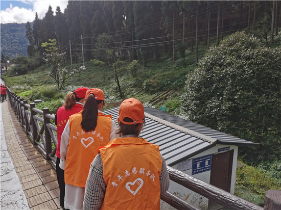“红队”党旗飘,战在最前沿。“红队”是党员先锋服务队,由52名社区党员组成,主要负责协助各种活动组织筹办、应急救援、隐患排查、政策宣讲、安全稳定、疫情防控等方面,是三支队伍中的“火车头”、主力军。年初,为抗击新冠肺炎疫情,“红队”党员志愿者值班值守40余天,检查过往人员2000余人次、车辆600余辆,入户排查外地来(返)洪人员900余人、协助管控重点人员20余人,人均开展治安巡逻60天以上。旅游旺季协助景区管理,疏导交通、服务游客3000余人,开展森林防灭火巡察200余天,清理河道垃圾20余次,洪涝应急救援2户8人。“红队”党员志愿者充分发挥先锋模范作用,带头冲锋、想在前面、干在前面,用实际行动践行了为民服务的宗旨。