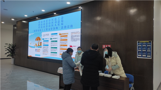 四川新闻网消息(杨东 郭雯茹 文/图)为进一步提高农民工的维权意识及规范用人单位用工行为意识,从源头上减少欠薪行为的发生,切实维护劳动者的合法权益和社会稳定,1月11日上午,眉山市彭山区人社局利用就业现场招聘会的契机,联合区总工会、区司法局,在区人力资源市场开展了根治欠薪、劳动维权法律法规政策咨询和宣传服务活动,将法治宣传送进招聘会现场。
