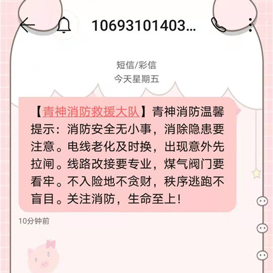下一步,大队将结合辖区当前火灾形势及消防安全工作实际,进一步丰富短信内容,及时编发贴近实际,贴近生活的消防安全温馨提示短信,为辖区消防营造良好的消防宣传环境。