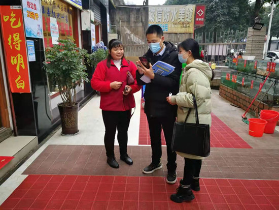 一是在单位办公大楼坚持每日喷洒消毒药水,保持办公场所防疫到位,同时督促单位全体职工为自己和家属注册“四川天府健康通”,在办公大楼进门处设置体温检测处、张贴“场所码”,要求全体职工必须体温检测合格并扫码才能进楼办公;二是在单位包保的九圣社区一、二、三网格,分小组入户进行“四川天府健康通”注册情况筛查,帮助不会注册的居民注册,为每个居住小区以及商铺申领“场所码”,并张贴在小区入口处及商铺门口,向门卫以及居民、商铺经营者宣传抗疫知识,讲解注册健康通和进出扫码的重要性,宣传春节期间防疫知识。