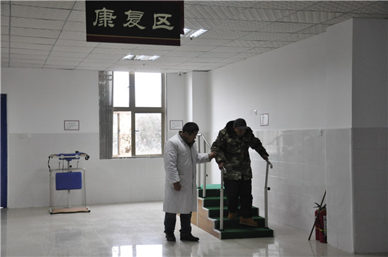 在县特困人员康养中心,医生正在指导老人进行康复训练