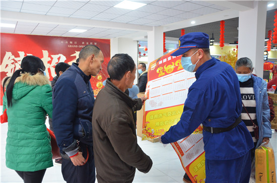 活动中,大队宣传人员走街串巷,向群众发放消防宣传挂历、防火宣传资料,为广大群众宣传讲解防火安全的重要性和消防安全基本常识,提醒大家春节期间用火用电多,要时刻注意防火用电安全。同时,结合各种店铺的特点,向店铺从业人员讲解日常防火需要注意的事项,如何发现火灾隐患,如何在火场逃生自救以及如何处置初期火灾等实用的消防安全知识,并热情地解答店铺从业人员提出来的消防安全方面的问题。