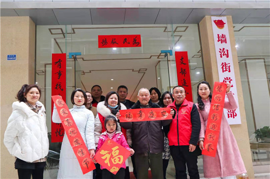 “上联是‘支部进小区为民’,下联是‘有事找支部解忧’,横批是‘为民服务’。来,刘书记,这是我们代表小区居民送给我们党支部的春联……”2月2日,在墙沟街小区党支部组织举办的“写春联、送春联、贴春联”活动上,辖区内的书法爱好者们共同将亲手写的春联交到支部书记刘玉明的手中。