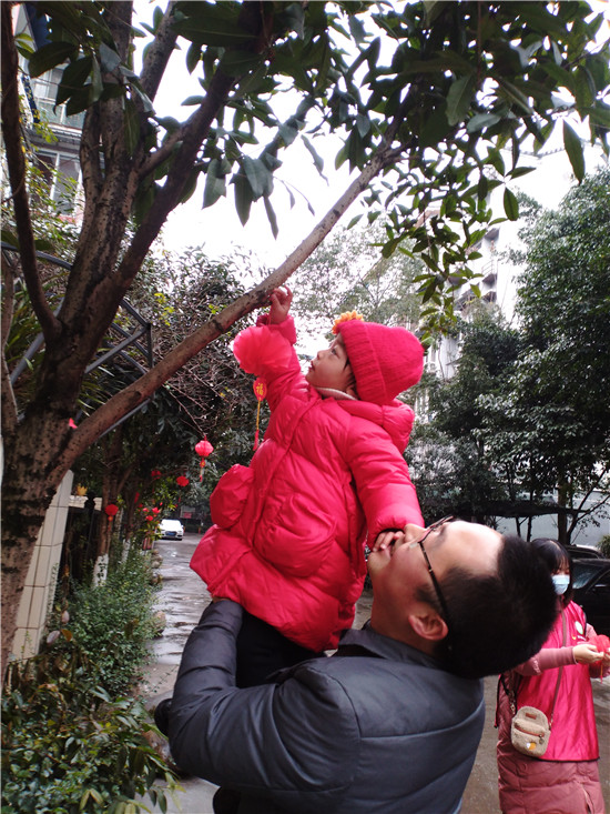 “我也要挂灯笼。”一个小女孩在爸爸的帮助下,在一根树枝上挂了一个红红的小灯笼,开心得手舞足蹈。“住在我们小区真的很幸福,你们看,我们金马小区就像一个大家庭。”小区业主王亚萍一脸微笑地对大家说。