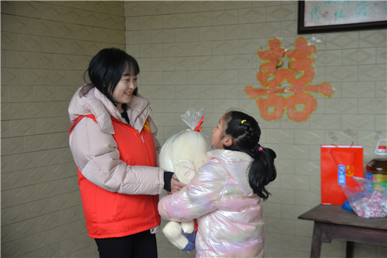 西部志愿者袁佳鑫也是参与本次心愿派送的青年志愿者,活动结束后他深有感触地说,作为一名在槽渔滩镇服务的西部志愿者,我很荣幸参与到这次公益暖冬行动中来。在这次活动中,看见了同学们发自内心的快乐,特别是有一位行动不便的小朋友,看到她接收到新年礼物时候的欣喜,并真诚地对我说“谢谢”,让我觉得所有的付出都是值得的,也更加坚定了自己志愿服务工作的决心。再次感谢爱心人士,让同学们过一个暖暖的春节,希望同学们能心怀感恩,学好知识、掌握本领,未来学有所成时不忘将这份爱心进行传递。