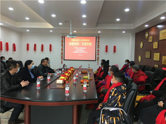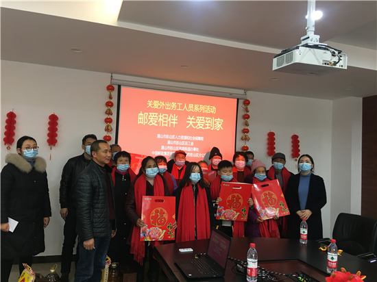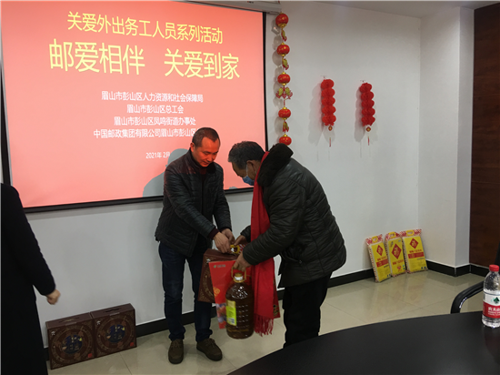 2月4日下午,由彭山区人社局、区邮政公司、区总工会、凤鸣街道办联合举办的主题为“邮爱相伴 关爱到家”亲情连线慰问活动,在彭山邮政分公司举行,8个在外务工农民工家庭留守人员代表应邀到了活动现场。