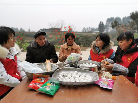 当天,志愿者们还带来了糯米面和馅儿,同李素芳老两口儿围坐在一起搓起了汤圆,希望新的一年甜甜蜜蜜、团团圆圆。老两口想把这份充满年味的喜悦同儿子分享,志愿者们帮忙连线接通了视频。