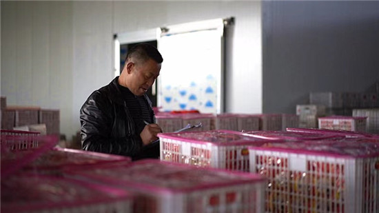 郭池祥是甘家沟村衡鑫果品农场的业主,负责甘家沟村椪柑的生产、供应和销售已有12个年头。一大早,他就与村民们忙着给椪柑包装套袋,他说到,当天有4万斤椪柑将从这里发送出去。