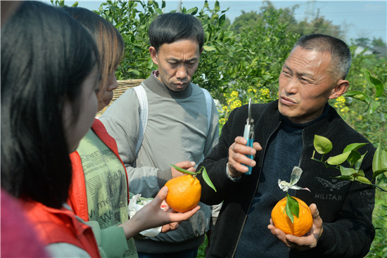 邹亮文是洪雅县首届乡土人才,也是十里八乡的水果种植大户与管理技术专家。据他介绍,春见柑橘的学名是春见,俗称耙耙柑。成熟期在12底至开春。“因为藤椒是短平快经济作物,我在柑橘地套种藤椒,实现土地利用率和经济效益最大化。带动春风村、龙凤、天池等村社果农套种。大幅度增加了果农收入。有很多外出务工人员都返乡和我一起种起了柑橘。”