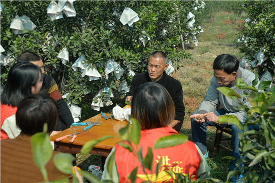 四川新闻网消息(朱小根 袁桂林 文/图)2月20日,洪雅县余坪镇春风村三组邹亮文的田间果园里,科普志愿者正在协助邹亮文对今年的柑橘“春见”进行摘果、验果、装箱、上车……大货车载着一箱箱的柑橘离去。丰收的喜悦挂在这位以勤劳和科技致富的果农脸上,显得特别的厚实而甜美。
