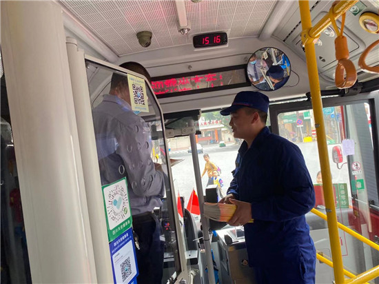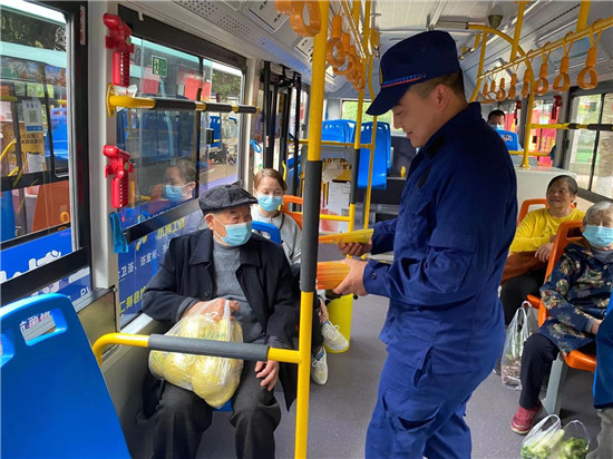 四川新闻网消息(朱林玉 文/图)为进一步扩大消防宣传覆盖面,全面提高群众消防安全意识和火灾防御能力,仁寿消防救援大队创新宣传形式,积极与公交公司进行协调,利用公交车客流量大、信息传播快、覆盖面积广的特点,在公交车内发放消防宣传手册,城市公交“变身”流动的消防宣传车,成为城市一道靓丽的风景线。