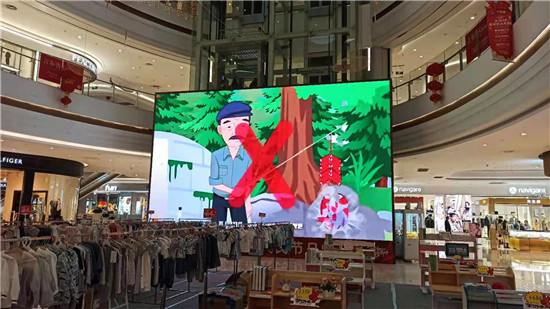 针对重大活动期间群众出门购物休闲集中的特点,东坡区消防救援大队着眼于辖区主要路段商户的LED显示屏,通过与各商户负责人积极协商,显示屏定时播放森林防火警示片。用卡通形象让广大群众更贴切的认识到森林防火不仅仅要言于口、牢记于心、更要付诸于行。