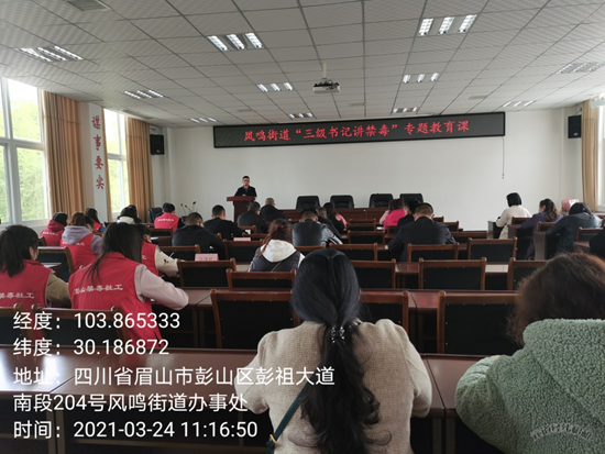 专题课紧紧围绕禁毒工作的系列重要指示精神,切实把思想和行动统一起来,坚决遏制毒品问题发展蔓延。赵耀洲主任主要讲解:什么是毒品、毒品的危害、国际国内川内以及彭山毒情严峻形势、坚持“党管禁毒、铁腕治毒”的意义,同时分析了凤鸣街道各级禁毒工作现状,全面部署了第二季度凤鸣辖区内禁毒工作持续和深入推进的举措。
