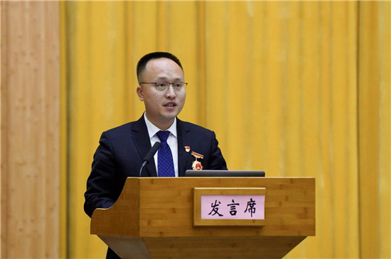 全国脱贫攻坚先进个人徐俊在给全县党员干部作先进事迹报告