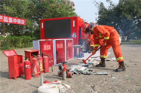 此次销毁活动主要包括不合格灭火器、应急照明灯、防火门、消防水带、消防安全指示标识等消防产品,目的就是向广大消费者、产品生产企业和社会各界宣传普及消防产品和消防法律法规知识,使广大人民群众进一步增加辩假常识,提高识假能力,增强拒假勇气,树立自我保护意识和维权意识,形成人人识假、人人打假、处处打假的良好局面,着力营造安全、健康、和谐的消防产品消费环境。