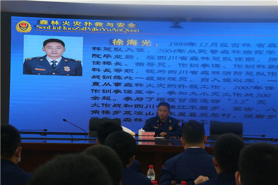 培训会上,徐海光老师通过真实案例结合图片的方式,主要从近几年国内外发生的典型重大火灾、森林扑火现场指挥与紧急避险、扑救原则和常用的扑火战术等,全方位开展培训。同时,结合近段时间发生的几起森林火灾以及当前森林防灭火工作面临的新形势、新情况、新要求,从基层基础、扑救手段、安全避险等常见问题以及注意事项进行了专业讲解。