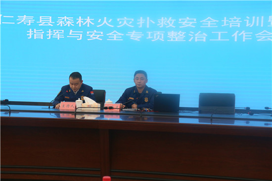 四川新闻网消息(唐秀 文/图)为进一步夯实全县森林防灭火工作基础,全面提升森林防灭火应急处置能力,切实做好全县森林防灭火工作,4月9日,仁寿县组织召开森林火灾扑救安全培训暨扑火指挥与安全专项整治工作会议。县森林火灾专业扑救队队员在主会场参会,各镇乡(街道)分管领导、安办主任及工作人员、巡山护林队员、森林火灾群众扑救队员以及政府专职消防队在各分会场参会。此次培训会邀请省森林消防总队教员徐海光老师到场授课。