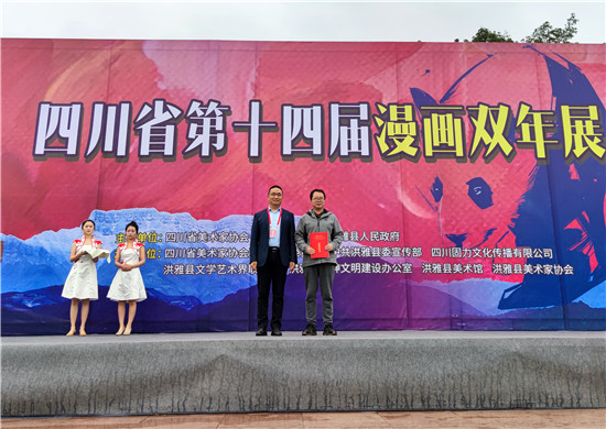 四川新闻网消息(余静 记者 李田)4月14日,四川省第十四届漫画双年展开展暨颁奖仪式在洪雅县举行。开展仪式上,四川省美术家协会漫画艺术委员会向洪雅县赠送了漫画作品,来自省、市、县的相关领导和嘉宾为获奖者颁奖。
