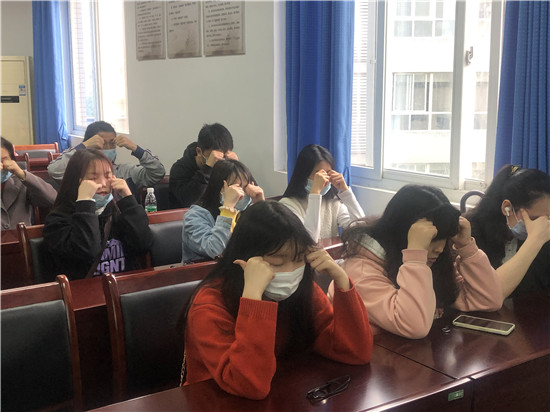 讲座中李远芳老师现场示范并领带大家做生活中抗焦虑、调节焦虑的小妙招