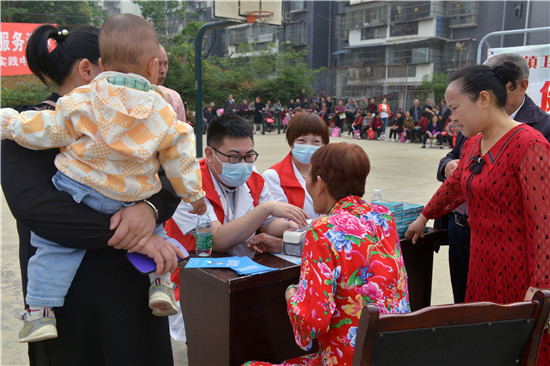 在表演现场,江口街道卫生院、便民服务中心、综治中心等设立服务点,开展量血压健康咨询、计生政策咨询、就业咨询、禁毒宣传等便民服务,每一项都贴近老百姓的日常生活所需。前来参加活动的居民,把服务台围得满满当当。很多居民表示,这样的志愿服务活动他们非常喜欢,希望以后这样的活动可以长期开展下去。