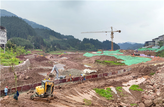 四川新闻网消息(余静 记者 李田)4月25日,在洪雅县瓦屋山“艾莎丽亚”国际康养度假酒店项目建设现场,挖掘机忙个不停,运料车来回作业,工人们有序施工,整个建设现场一片繁忙。