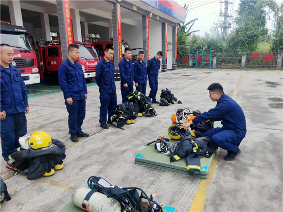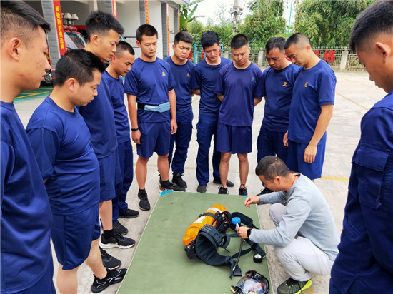 通过原地着战斗服佩戴空气呼吸器训练,增强了队员对着战斗服和新式空气呼吸器的全方位了解,提高了新队员业务技能水平,为早日成为一名合格的消防队员打下坚实基础。