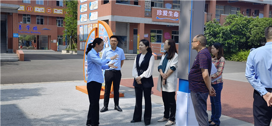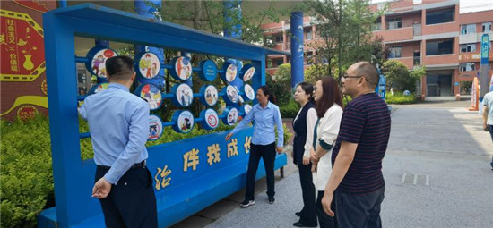 四川新闻网消息(张跃平 文/图)5月8日上午,彭山区区委常委、宣传部部长梁兰一行到彭山区实验小学调研,就学校党史学习教育、禁毒教育等工作开展督导检查,区教体局相关负责人陪同检查。