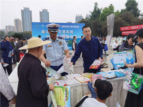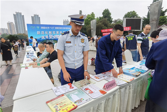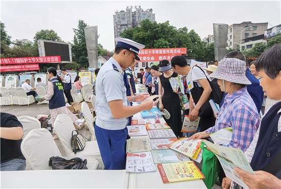 四川新闻网消息(任粒裴 文/图)洪雅县消防救援大队为切实做好“防灾减灾日”宣传活动,进一步普及防灾减灾科普知识,提高广大群众的防灾减灾意识和自救互救能力,提高广大人民群众应对突发事故应急处理能力,5月12日,洪雅县消防救援大队与县文化广播电视和旅游局、县卫生健康局、县应急管理局等部门在洪雅县新广场开展“防范化解灾害风险,筑牢安全发展基础”为主题的防灾减灾宣传活动。