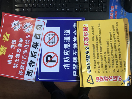 期间,宣传人员在住宅小区楼道、宣传栏等醒目位置张贴电动车宣传海报,并向过往群众宣传电动车安全停放、充电知识,告诫群众要购买、使用符合相关技术标准的电动车,遵守消防安全法律法规。针对张贴过程中发现的电动车停放在楼道内违规充电并占用疏散通道的问题,宣传人员要求物业管理人员立即对小区的楼梯间和楼道进行全面清理,切实解决电动自行车违规停放问题,避免因电动车管理使用不当引发火灾。