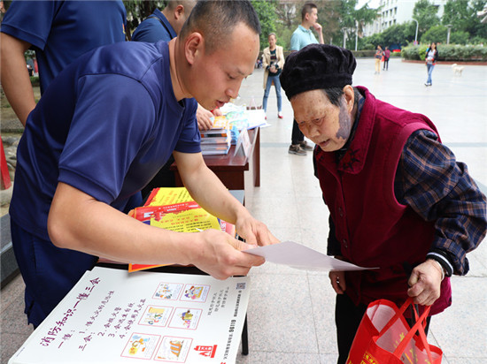 四川新闻网消息(宋欢 图/文)党史学习教育开展以来,丹棱县消防救援大队始终将“我为群众办实事”实践活动贯穿到日常工作中,为进一步增强辖区群众防灾减灾意识,普及消防安全常识,全面提高辖区群众应对突发事件时自救互救能力。5月12日上午,应急、卫健、交通运输、市场监管、住建、公安、消防等部门走进九龙广场开展“5.12”防灾减灾宣传活动。