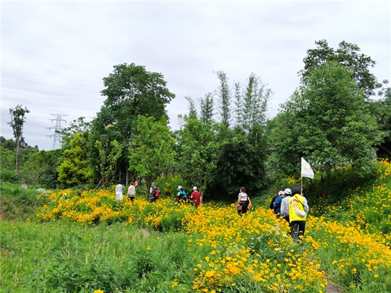 在午餐后,游客们来到了天府新区鹿溪河生态区,生态区内漫山遍野的开满了金色的小花,和周围的环境浑然一体、相得益彰,游客们不时地驻足拍照、赏花、跳舞、拍抖音,欢快无比,漫步在园区内,领略着天府新区的风光,感受山水之情。