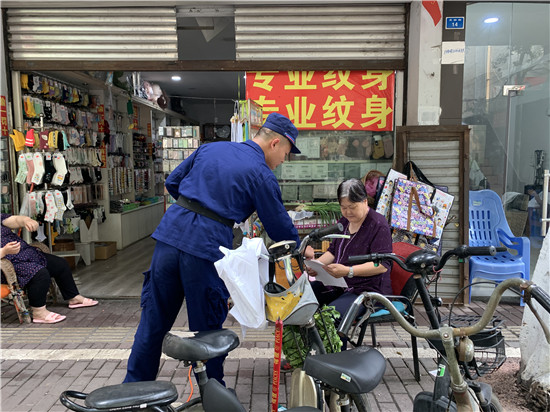 活动中,大队宣传人员来到辖区沿街商铺,结合近期发生的电动车火灾事故,用通俗易懂的语言向店主及顾客普及电动车消防安全知识、夏季家庭防火注意事项、灭火器的使用方法、正确拨打“119”电话报警、火场自救逃生等安全知识,并现场发放了消防安全宣传资料,提醒大家要紧绷防火这根弦,避免造成严重后果。