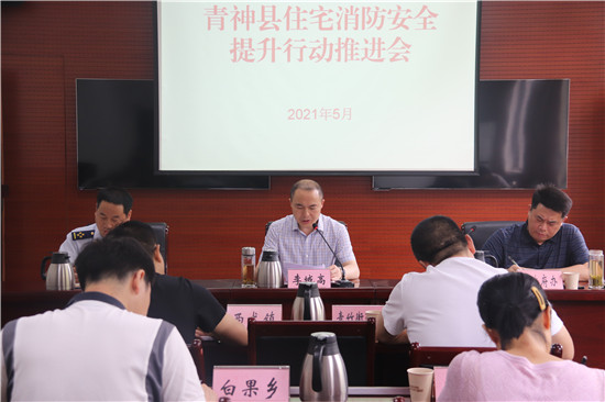 县政府副县长、县消安委主任李域高对前期各部门之间通力合作,各司其职取得的成绩表示肯定,并就推进全县住宅消防安全提升行动作出以下强调:一是要将保持头脑清醒贯彻始终。要结合我县实际,清楚地认识当前全县消防安全形势的严峻性,要坚持党政领导,实行“一把手”负责制,紧盯“小火亡人”事故特点,全覆盖开展住宅消防安全隐患排查整治,全面提升城镇、农村住宅消防安全基础。二是要将抓实抓细作风贯穿始终。要明确《青神县住宅消防安全提升行动方案》重点工作,落实专人做实做细各项具体工作,要把“保安全、促发展、惠民生”工作做到位,坚决杜绝各类安全事故的发生。三是要将提供坚强保障贯穿始终。各乡镇、街道要以此次提升行动为契机,加强对独居老人、特殊场所的摸排,大力推广安装独立式感烟探测报警器为火灾弱势群体提供必要的安全保障,同时,各牵头单位之间要积极主动、密切配合,确保全县住宅消防安全提升行动取得实效。