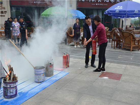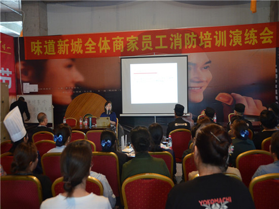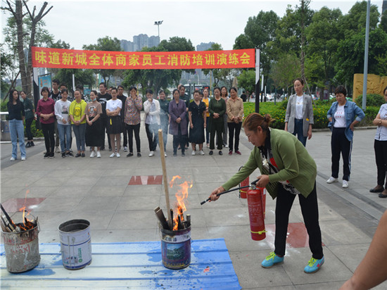 四川新闻网消息 为进一步普及消防安全知识,提高商家从业人员消防安全意识,提高突发火灾的应急处置能力,东坡区消防救援大队走进味道新城为商家员工开展消防安全培训演练。
