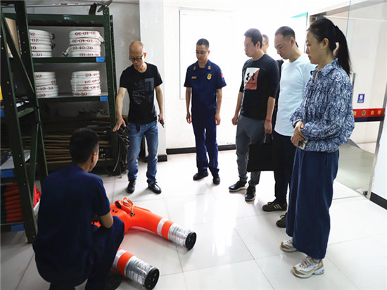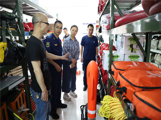 白局长一行到达大队后,首先前往器材装备室实地查看了水域救援装备,详细了解了水域救援飞翼及其他水域装备性能、作用及使用要求。