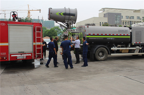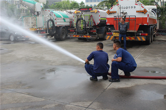 此次市政环卫所共有4台洒水车出水口统一更换、加装65mm口径的卡式接口,利用水带直接向消防水罐车进行供水。在测试现场,消防员耐心指导洒水车驾驶员学习使用消防接口,第一批次4台洒水车全部通过供水测试。