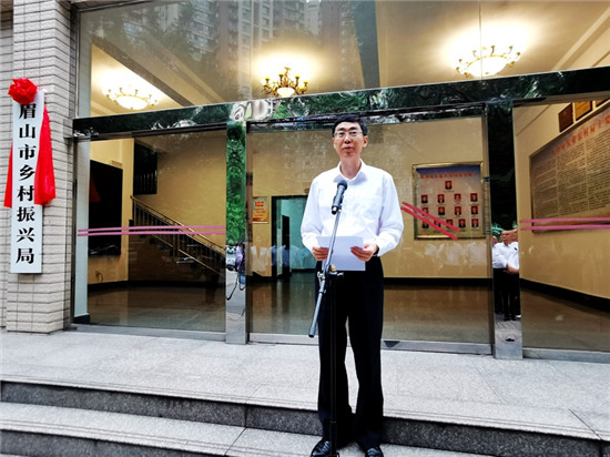 四川新闻网消息 2021年4月29日,《中华人民共和国乡村振兴促进法》(以下简称《乡村振兴促进法》)经第十三届全国人民代表大会常务委员会第二十八次会议通过,自2021年6月1日起施行。2021年6月3日,眉山市乡村振兴局揭牌仪式在市农业农村局办公楼一楼大厅外举行,这标志着眉山市脱贫攻坚取得全面胜利后,开启了全面推进乡村振兴的新征程。中共眉山市委副书记、天府新区眉山党工委书记黄剑东,市政府副市长肖忠良,市委组织部常务副部长张瑾,市农业农村局局长肖巍出席仪式并共同揭牌。市委副秘书长周泮羽主持仪式。