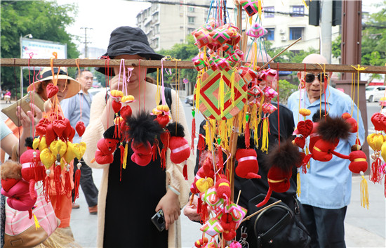 “按照传统的风俗,以前每年端午节的时候,我们就要买一个香包挂到猪院子上,预示一年四季喂猪都很顺利。”市民李自群在买了一个猴子形状的香包后,与旁人聊天时说道。
