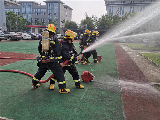 四川新闻网消息 为切实增强消防队员业务技能水平,提高队员灭火救援实战能力,全面提升队伍战斗力。6月10日,丹棱县政府专职队组织开展快速出水控火操训练。