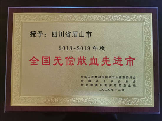 眉山也连续7次荣获“全国无偿献血先进城市”荣誉称号,共有 106 人荣获“全国无偿献血奉献奖金奖”、有 153 人获“全国无偿献血奉献奖银奖”有 1358 人荣获“全国无偿献血奉献奖铜奖”,为保障临床用血和血液安全、维护人民群众身体健康和生命安全作出了重大贡献。
